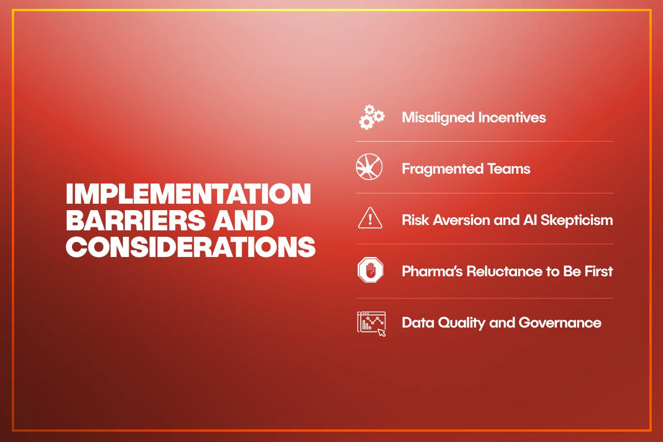 Pharma’s Reluctance to Be First Demonstrating clear success stories—especially within the same therapeutic area or regional market—can encourage broader adoption.