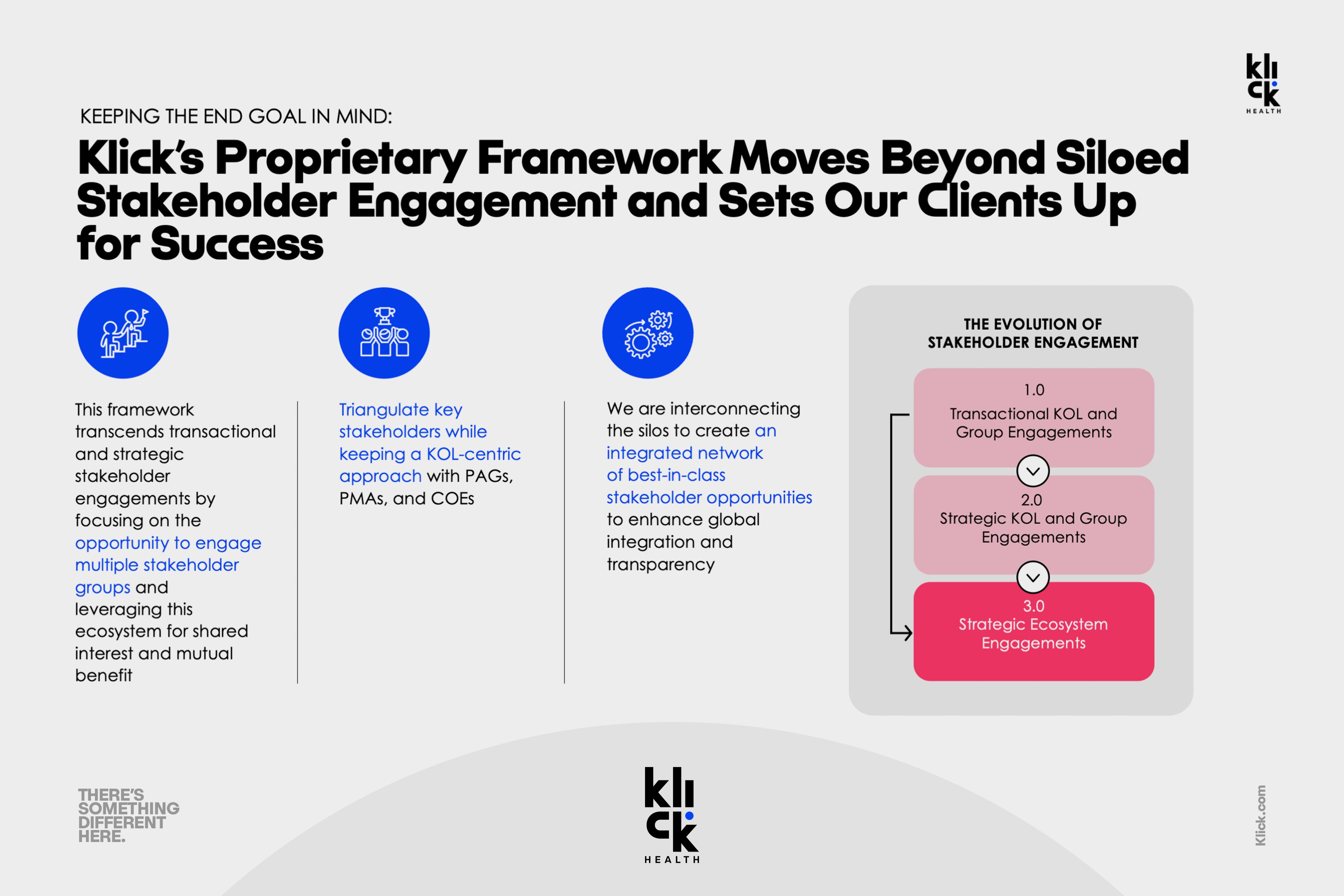 The new era of KOL engagement requires substantial changes, but medical affairs teams that rise to the challenge will help shape the future of healthcare. The Klick roundtable highlighted the industry's readiness to take on this task. By sharing insights and collaborating on solutions, medical affairs leaders can set a bold new direction for KOL engagement, leveraging AI and the broader ecosystem to create transformative impact. As the healthcare landscape continues to evolve, the importance of KOLs and medical affairs teams has never been greater. With strategic vision, collaboration, and a steadfast commitment to patients, they have the potential to shape the future of healthcare.