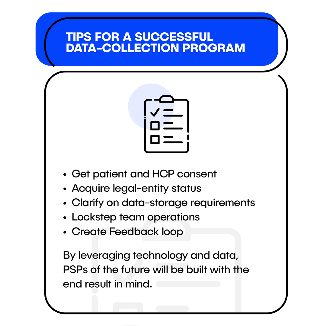 To maximize the value of your PSP’s real-world evidence, it’s essential to establish a strong data-collection process. Ensure patient and healthcare provider (HCP) consent is secured, clarify data storage requirements, and align your teams to operate in lockstep. Additionally, creating a feedback loop will help continuously refine your program based on the insights gathered, driving ongoing improvements in patient care and program efficacy.