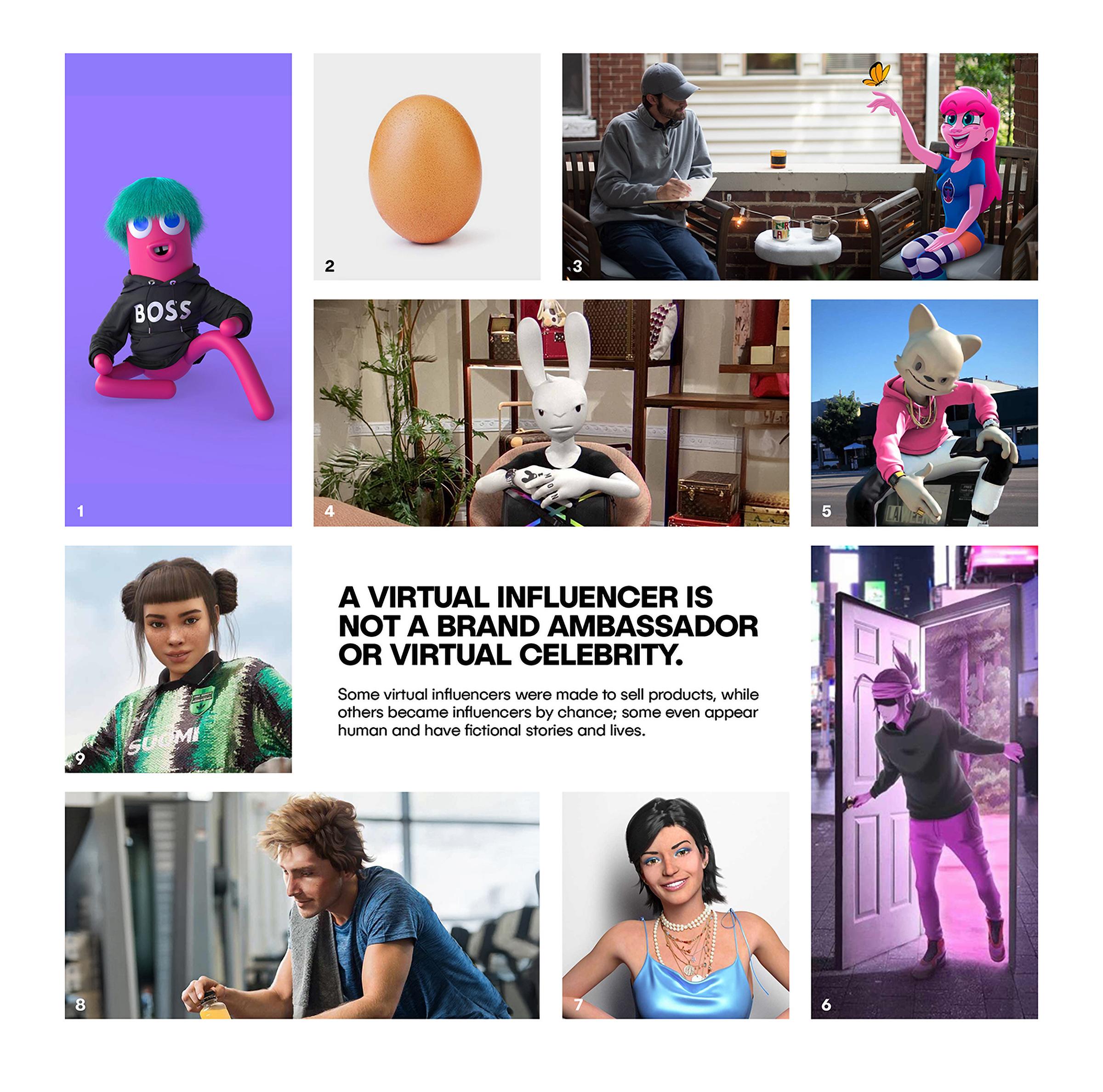 Virtual influencers exist only online—they are not physical people. Although often confused with AI, virtual influencers do not have to rely on AI to operate; instead, companies or individuals control them (though, some new virtual influencers do, in fact, use generative AI for interaction).