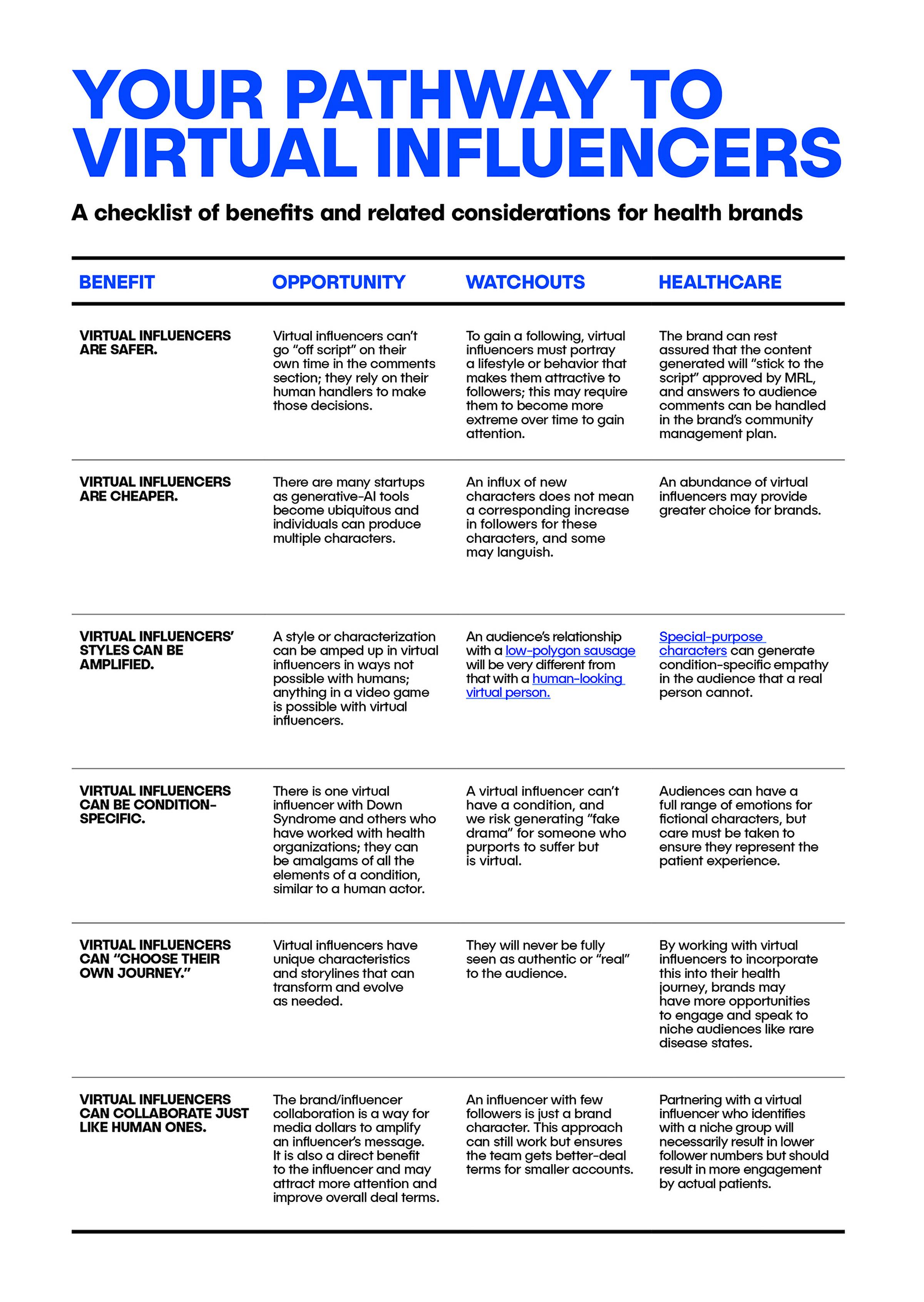 Virtual influencers are an intriguing option for brands that want to look into influencers. Seeding these influencers with stories of health challenges can resonate with patients, educating them about treatments that could transform their lives.